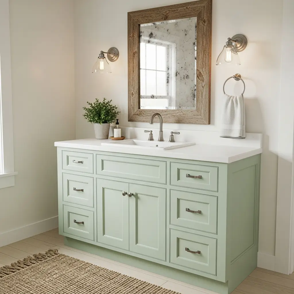 When I first suggested a sage green vanity to my husband, he looked at me like I’d lost my mind. “Green? In a bathroom?” Fast forward six months, and our bathroom is now his favorite room to show off to guests.