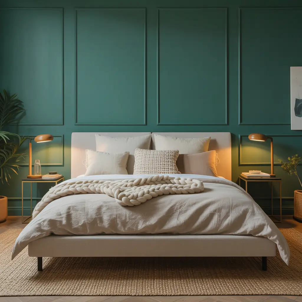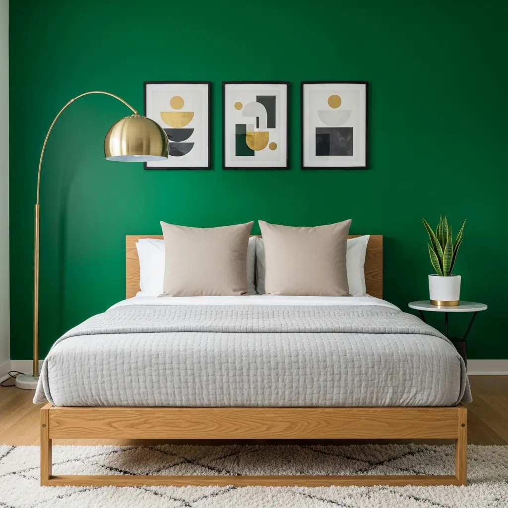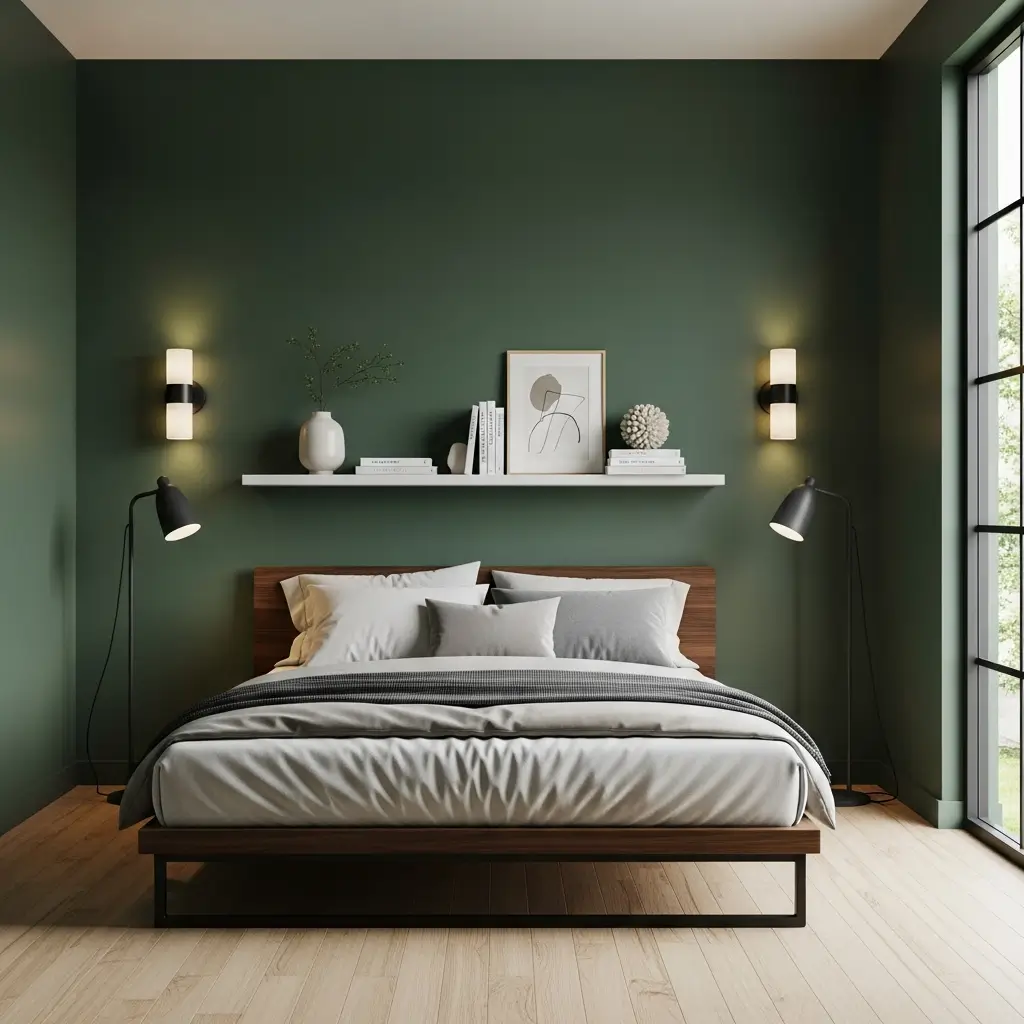 Forest green in a modern bedroom creates sophisticated drama that feels current, not dated.