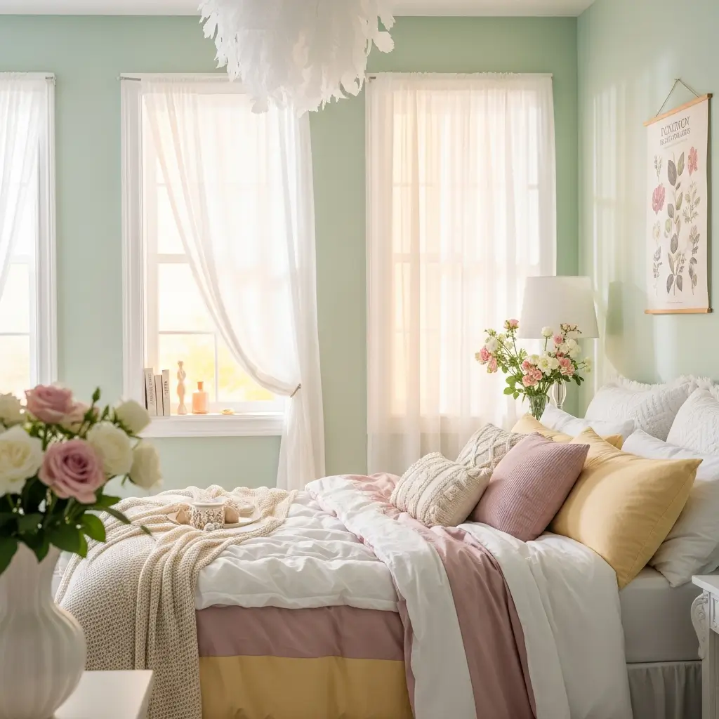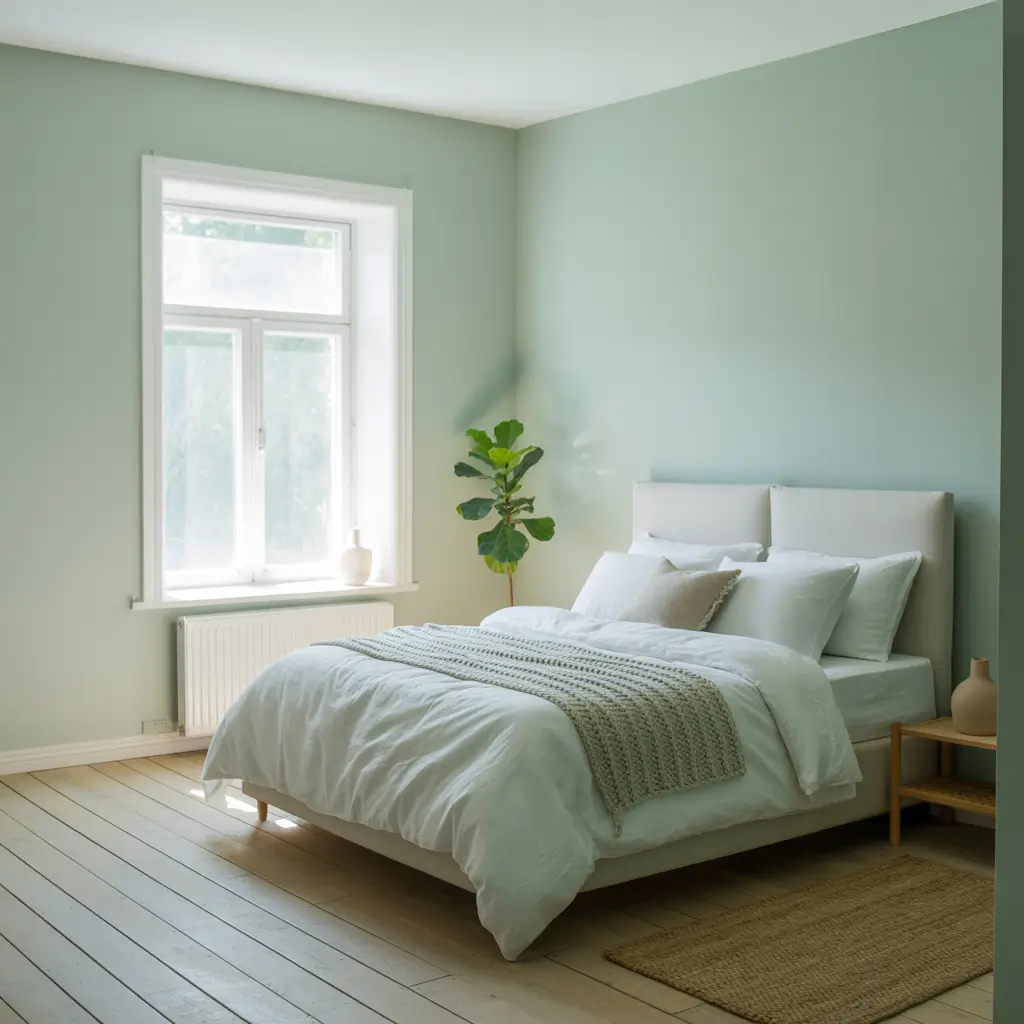 I used a barely-there green (like mint ice cream melted into milk) in my bedroom, and paired it with soft textures and vintage-inspired furniture. The result feels romantic but grown-up, feminine but not frilly.