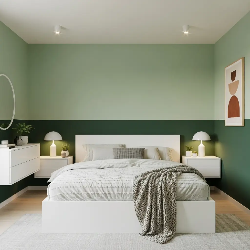 Can’t choose just one green? Don’t! Two-tone green bedrooms add depth and interest without overwhelming the space.