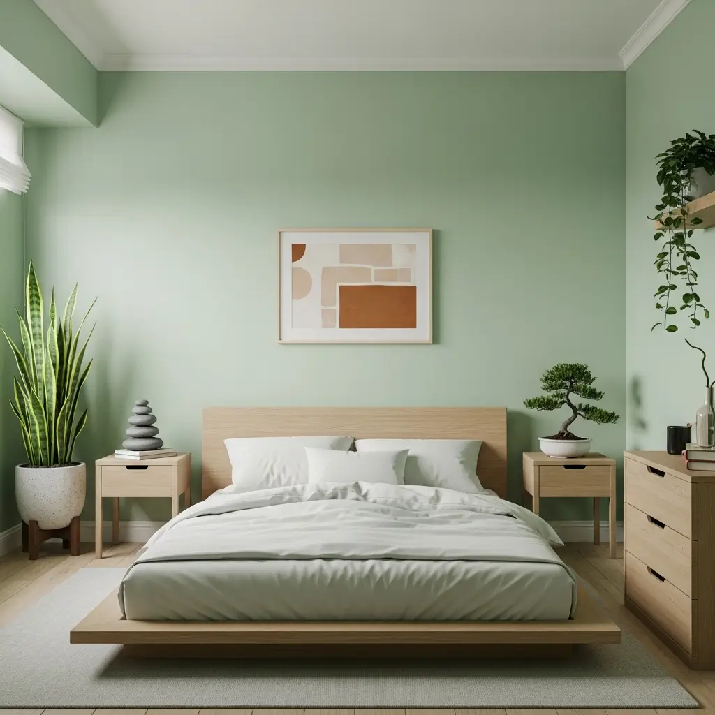 Creating a zen bedroom with soft green tones turns your sleeping space into a meditation retreat.
