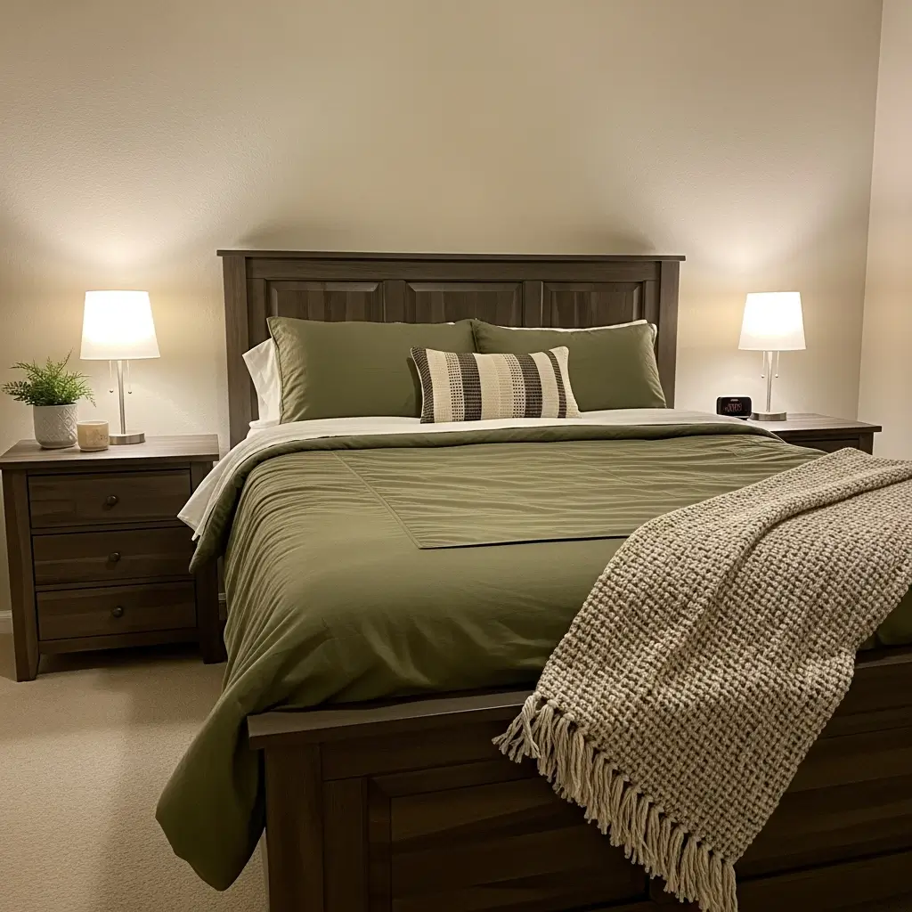 Beige walls actually enhance green comforters by providing a warm, neutral backdrop that doesn’t compete. The green brings life to beige while beige keeps green from overwhelming the space. It’s basically the bedroom equivalent of peanut butter and jelly – classic for a reason.