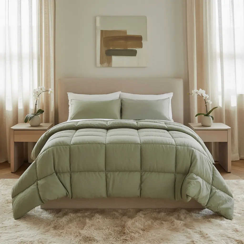Sage Green Comforter with Minimalist Decor