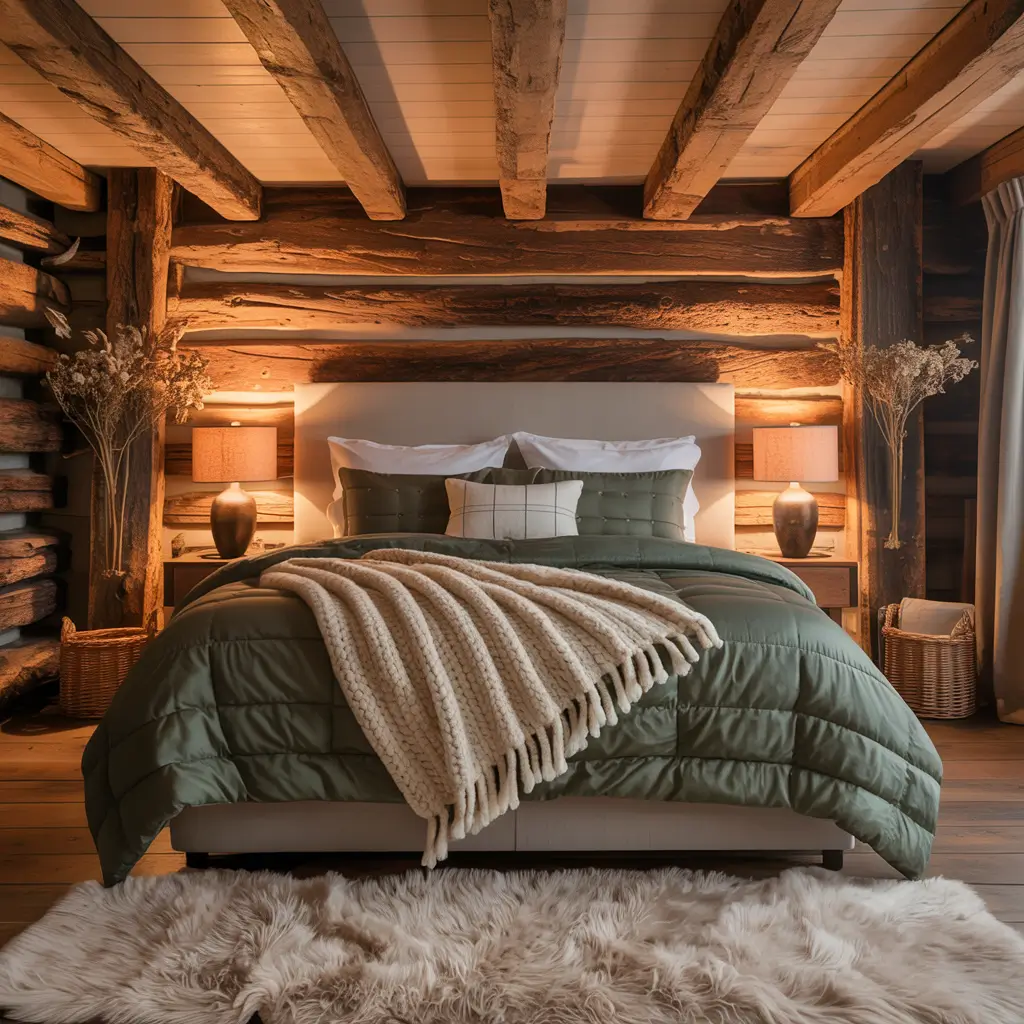Forest Green Comforter in a Rustic Cabin Style
