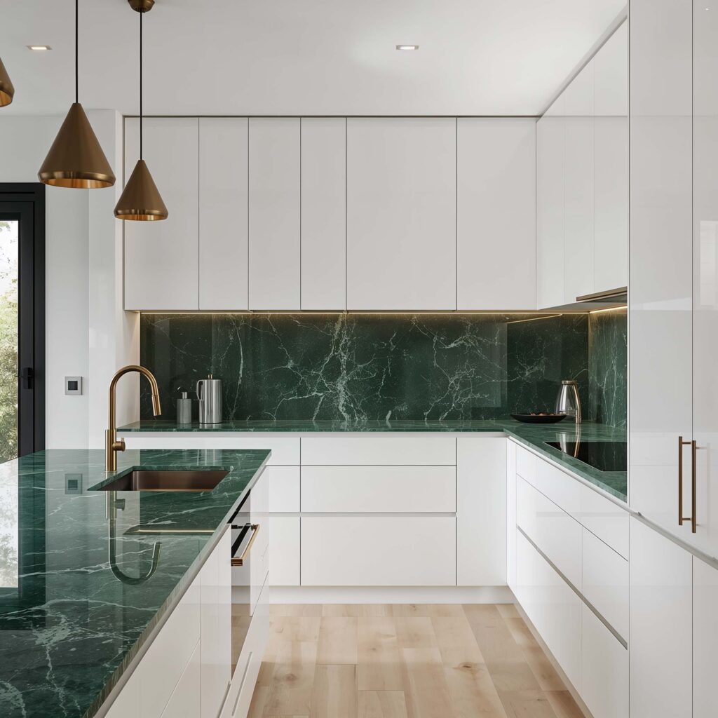 Let’s kick things off with the showstopper – emerald green countertops. These babies command attention like nothing else.