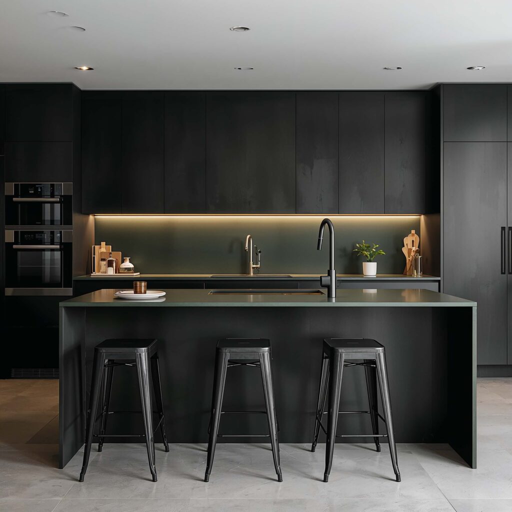 Matte finishes hide everything – water spots, fingerprints, minor scratches. They’re the practical choice that doesn’t sacrifice style. I’ve seen stunning kitchens where matte sage or forest green countertops anchor the entire design, creating a grounding effect that makes the space feel intentional and serene.