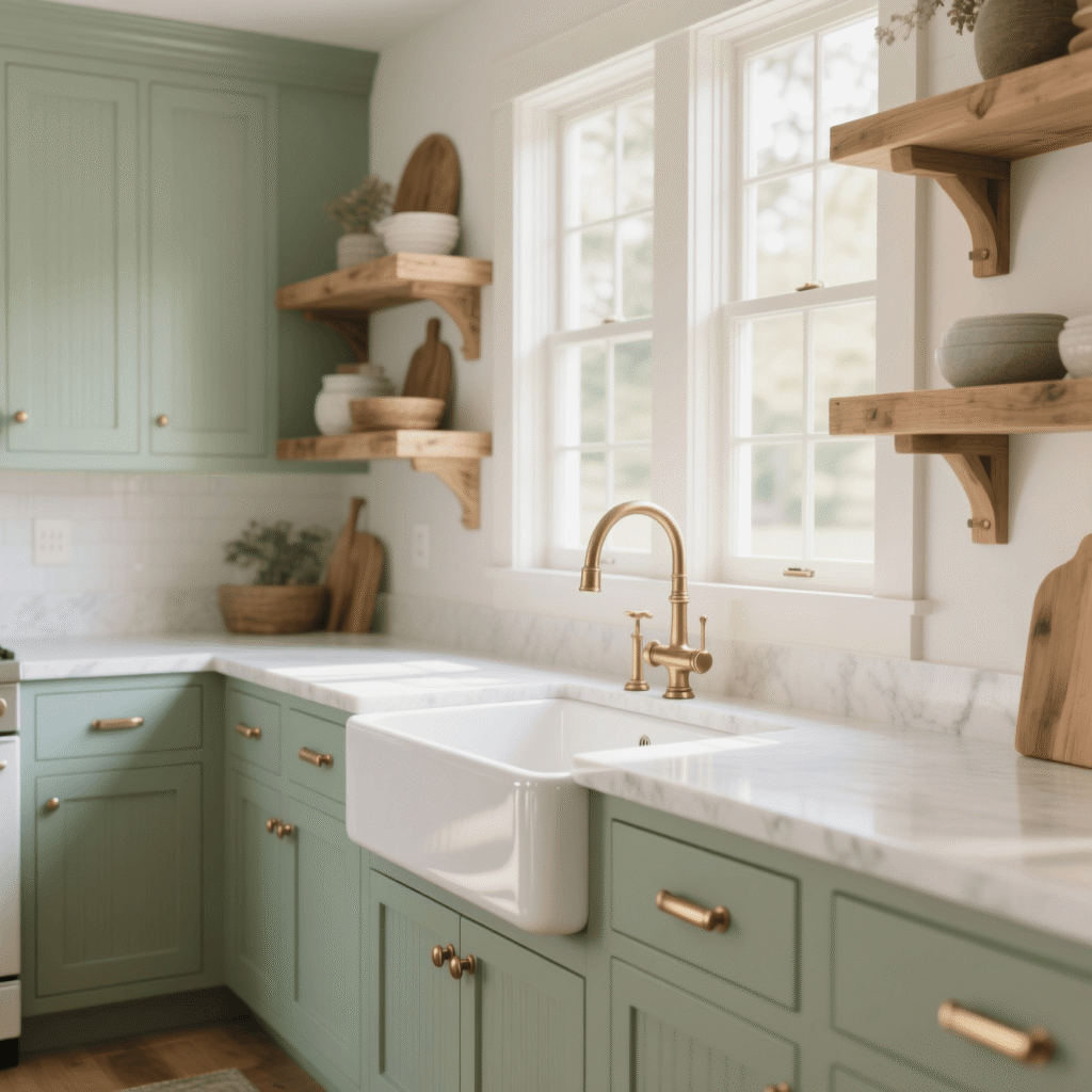 What really sells me on sage green? It ages gracefully. Unlike trendy colors that look dated after a few years, sage green has this timeless quality that’ll keep your kitchen looking fresh for decades.