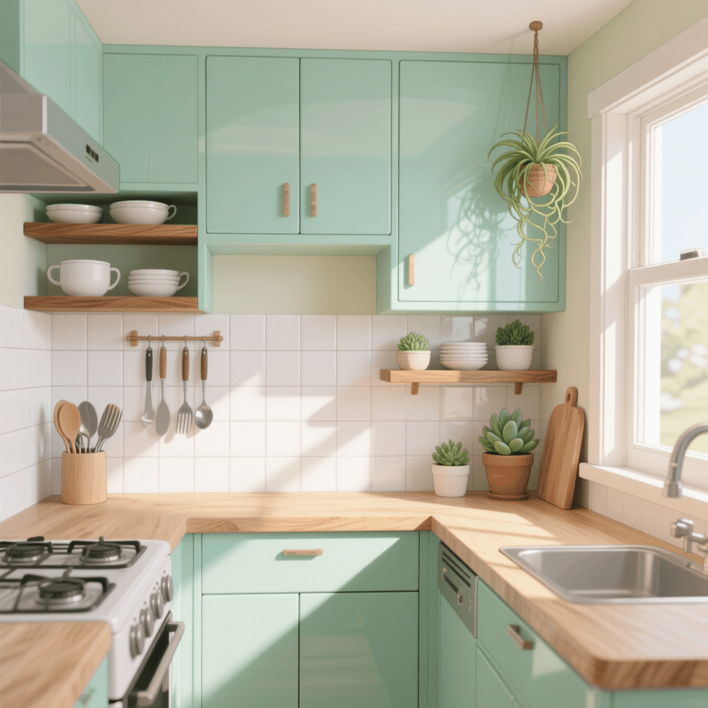 Who says small kitchens can’t have personality? Mint green makes compact spaces feel fresh, airy, and surprisingly spacious. It’s like a breath of fresh air every time you walk in.