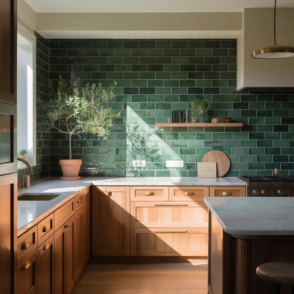 Natural light dramatically affects how green tiles appear. Kitchens with abundant sunlight can handle darker greens beautifully. Kitchens with limited light benefit from lighter, more reflective green options.