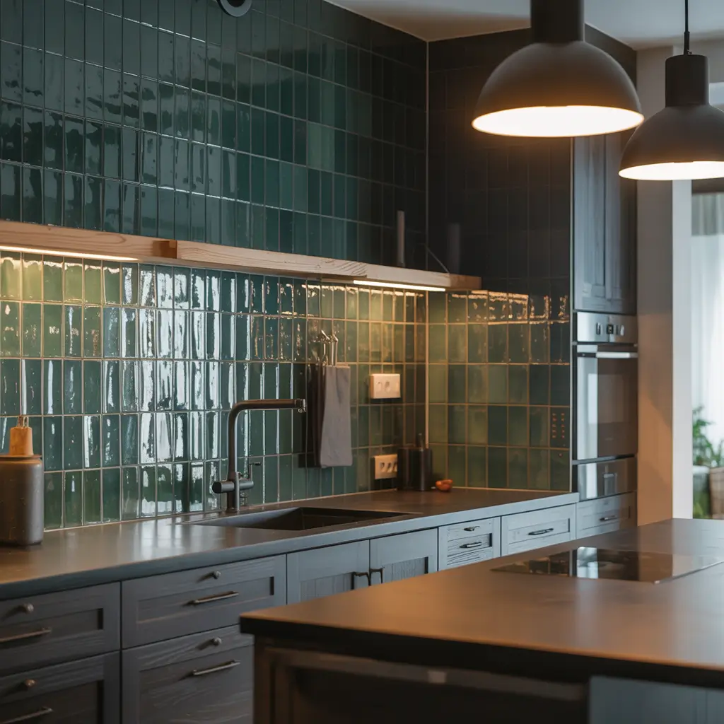 The obvious concern with dark forest green tiles? They might make kitchens feel smaller or cave-like. Here’s the truth: proper lighting and strategic placement eliminate this concern entirely.
