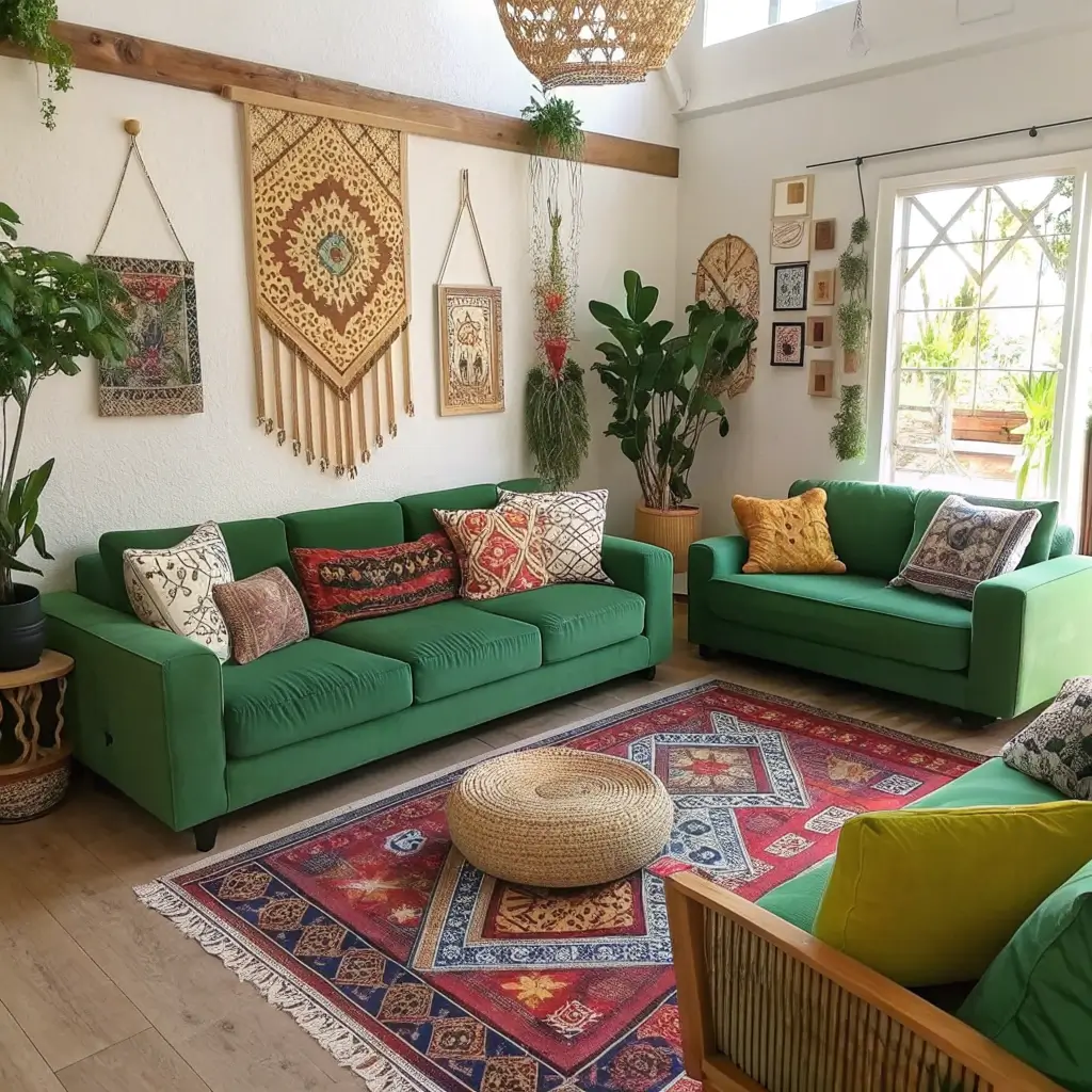 2. Vibrant Green Sofa Boho Chic Vibes