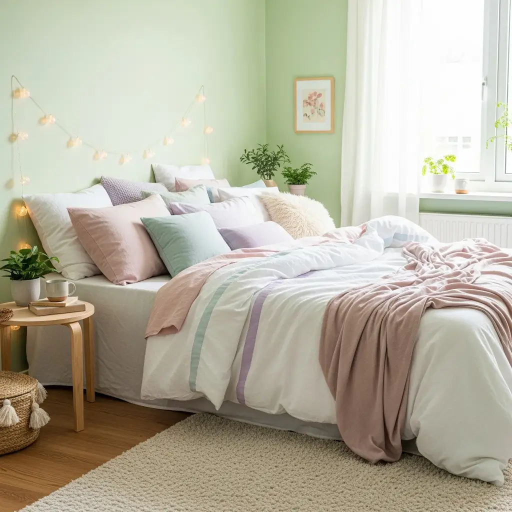 Not everyone wants intensity, and pastel green walls create the softest, coziest bedroom vibes imaginable. Think mint ice cream meets morning mist – subtle, sweet, and impossibly calming.