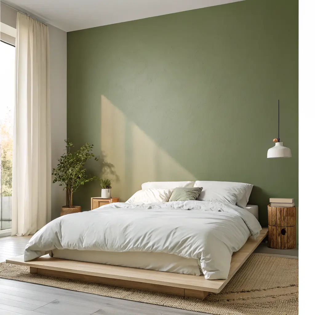 FYI, olive green photographs beautifully in natural light, making your minimalist bedroom look magazine-worthy without trying 🙂