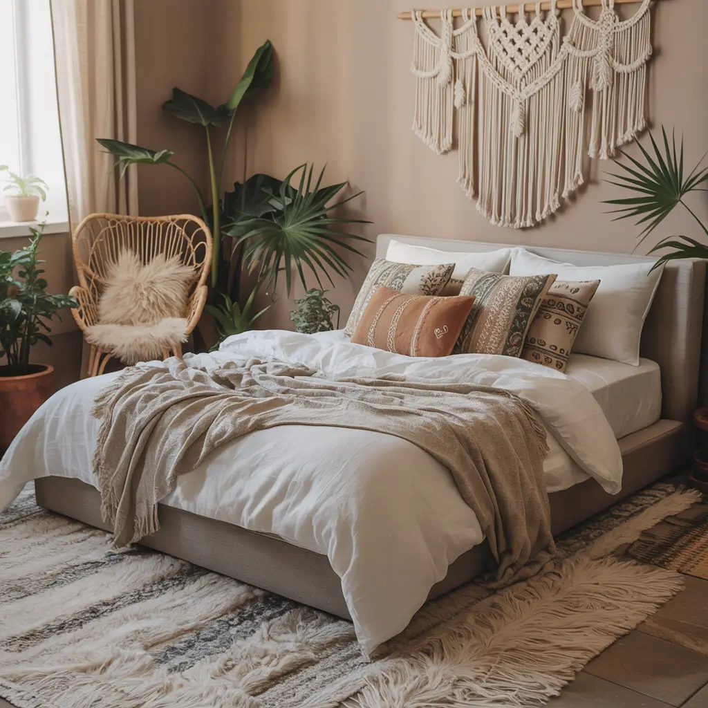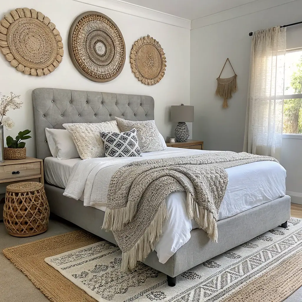 The key to boho style lies in the layering. Don’t just place one blanket on the bed—layer three in varying textures and grey tones. Add pillows of different sizes and patterns. Create depth through accumulation rather than single statement pieces.