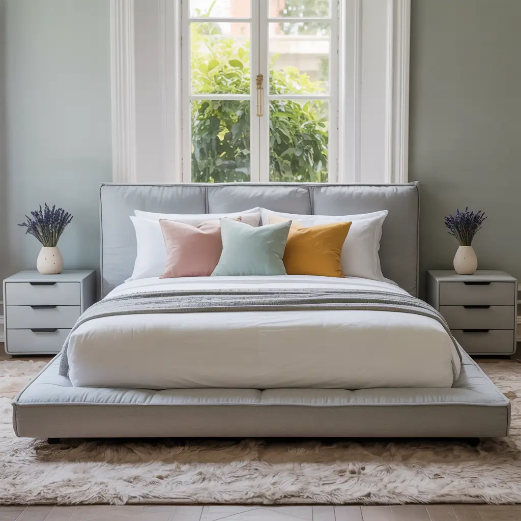 - Quilted or tufted bedding for dimensional interest