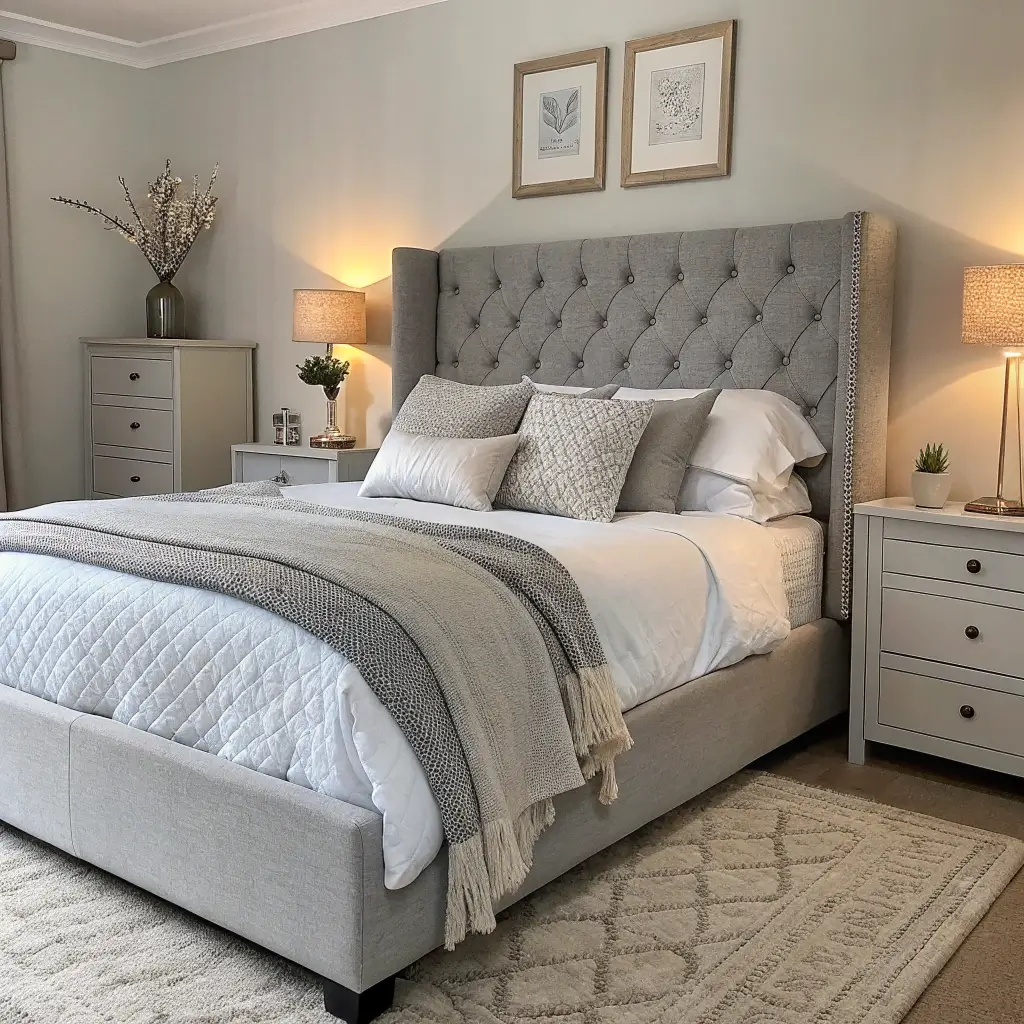 The bed dominates most bedrooms, making layered bedding one of the most impactful grey and white decor strategies. Done well, a beautifully made bed transforms the entire room’s atmosphere.
