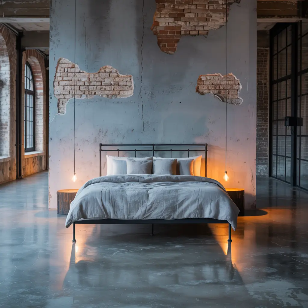 Industrial grey bedrooms embrace raw materials and urban edge. This style turns concrete’s cousin into something surprisingly cozy.