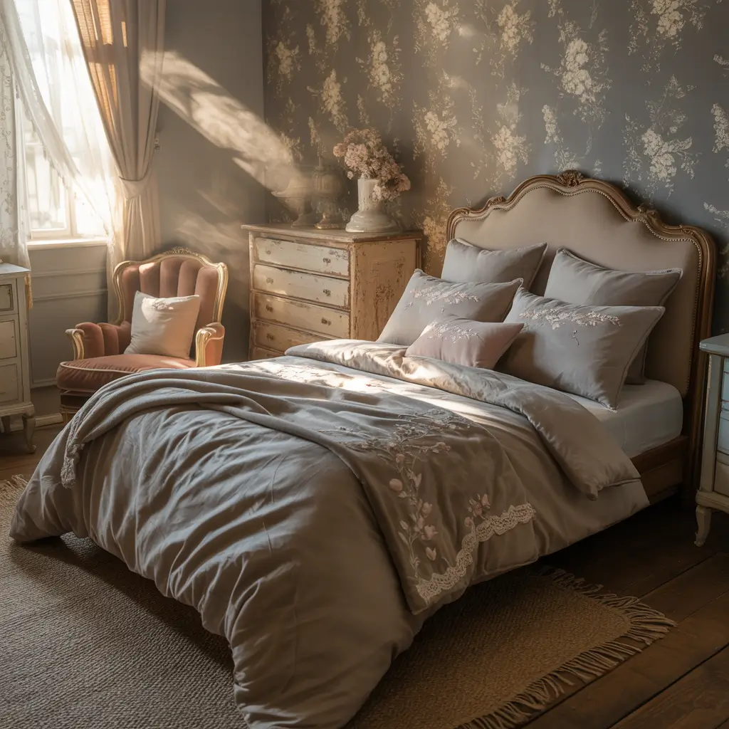 Vintage Grey Bedroom Charm