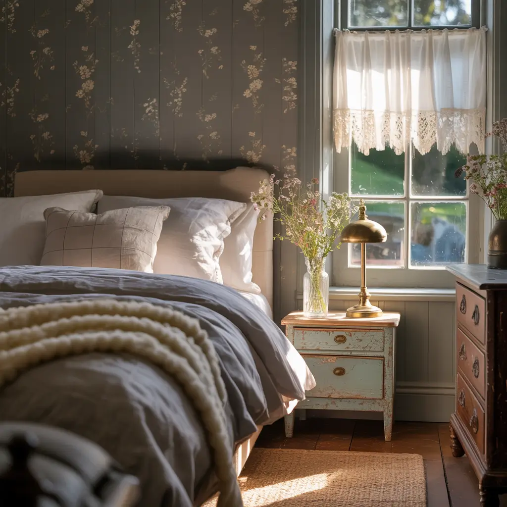 Cottage grey bedrooms combine cozy charm with sophisticated color. This style softens cottage sweetness with grey’s modern edge.
