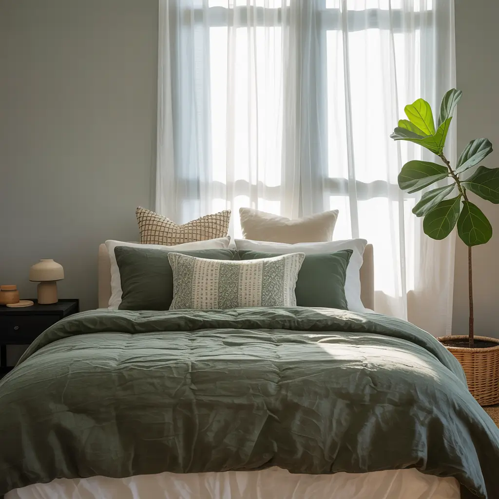 IMO, grey and green is the most underrated color combo in bedroom design. I discovered it accidentally when my grey bedroom needed life—adding sage green accents created this perfect balance between calm and vibrant.