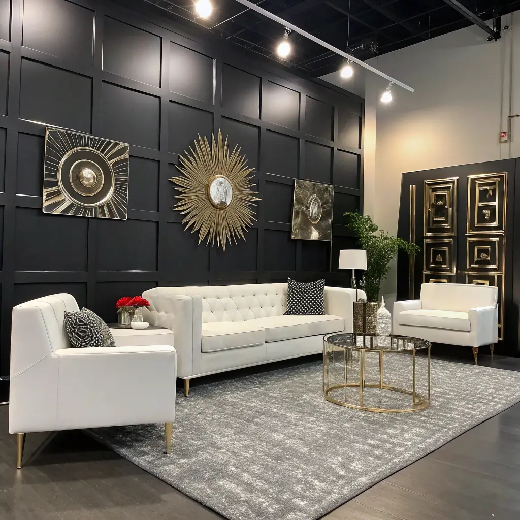 A black accent wall creates instant drama while white furniture keeps the space feeling balanced. This approach works beautifully in living rooms with good natural light, creating striking contrast that photographs like a magazine spread.