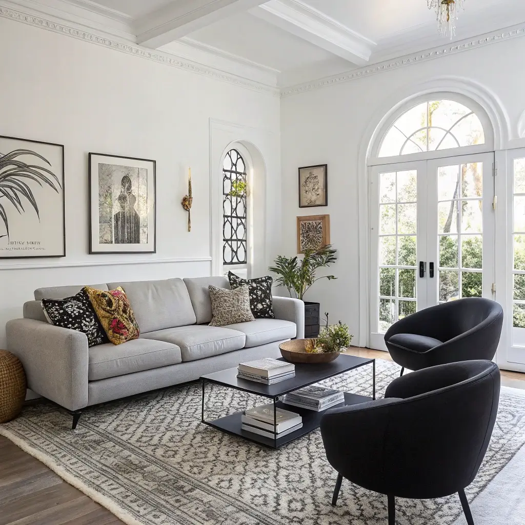 - Proportion matters most. Balance grey, black, and white according to your room’s size and natural light.