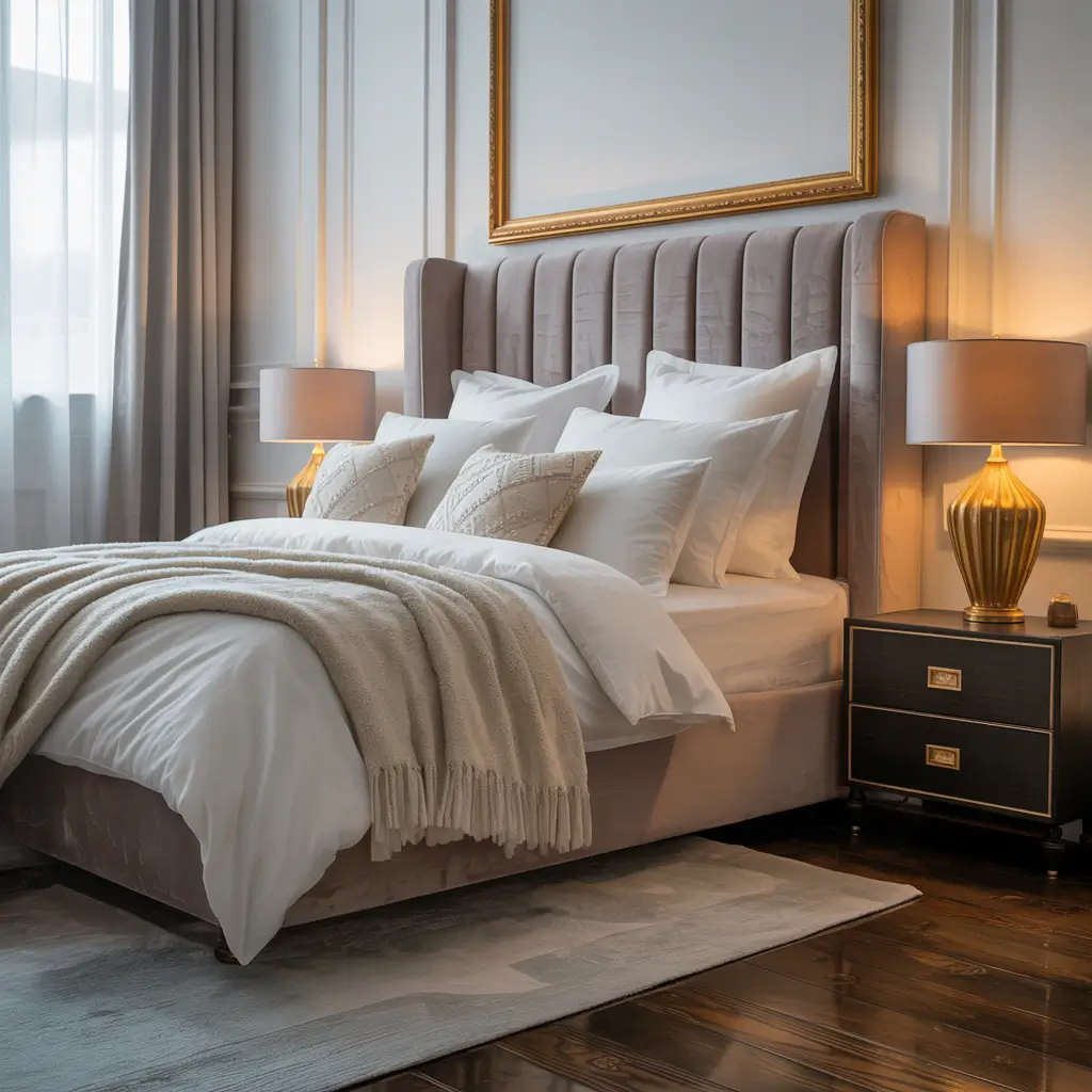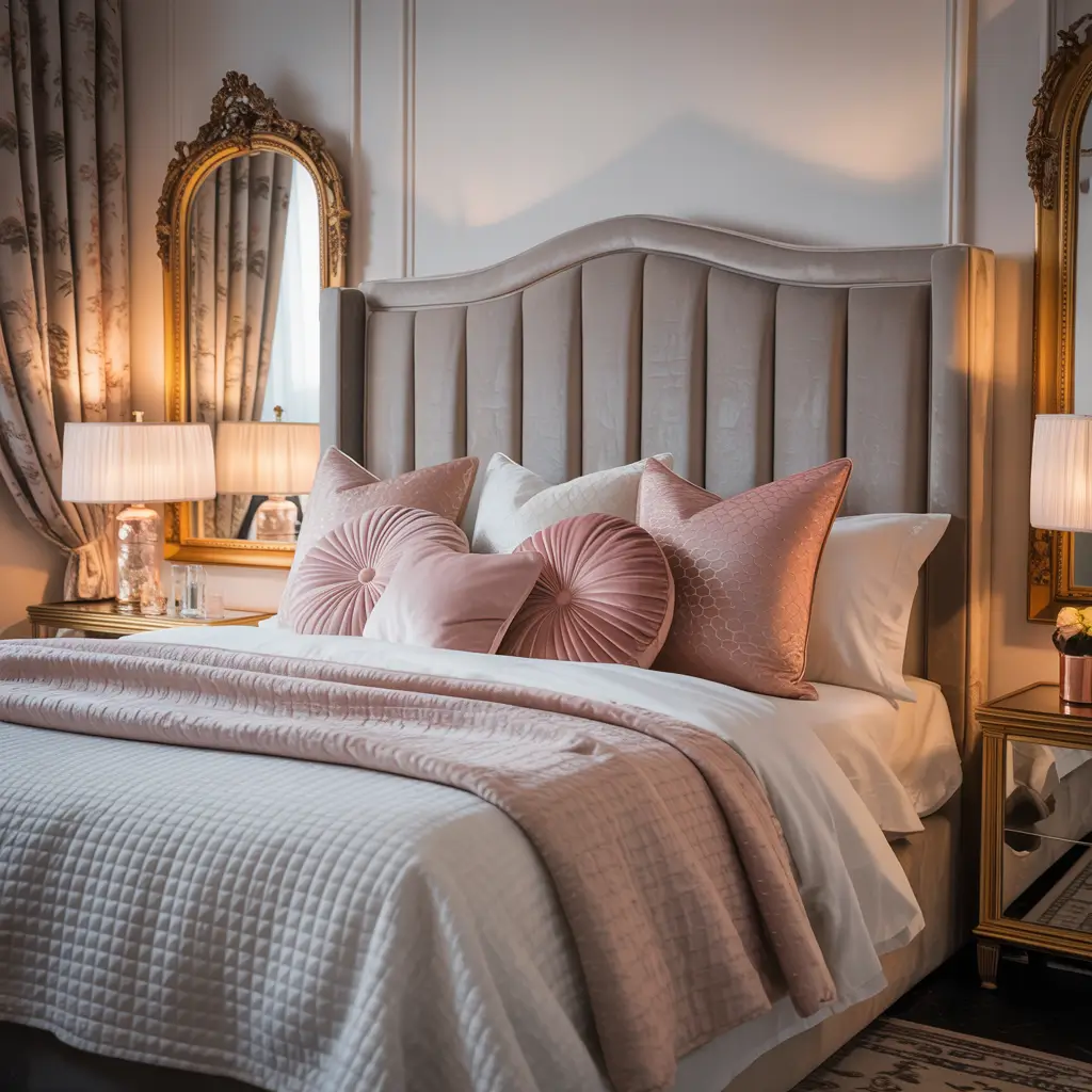 I’ll admit, I was skeptical about tufted headboards until I saw one styled properly. Deep button tufting in grey velvet or linen creates shadows and highlights that plain headboards can’t match. Add some sparkle through accessories, and suddenly you’re living in a boutique hotel.