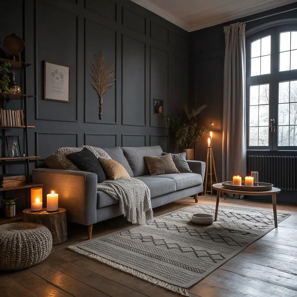 You can’t discuss Scandinavian style without mentioning hygge—that Danish concept of cozy contentment. Grey living rooms embrace hygge through: