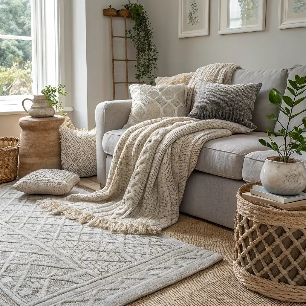 Accessory layer: Pile on throws, pillows, and decorative objects with varying textures