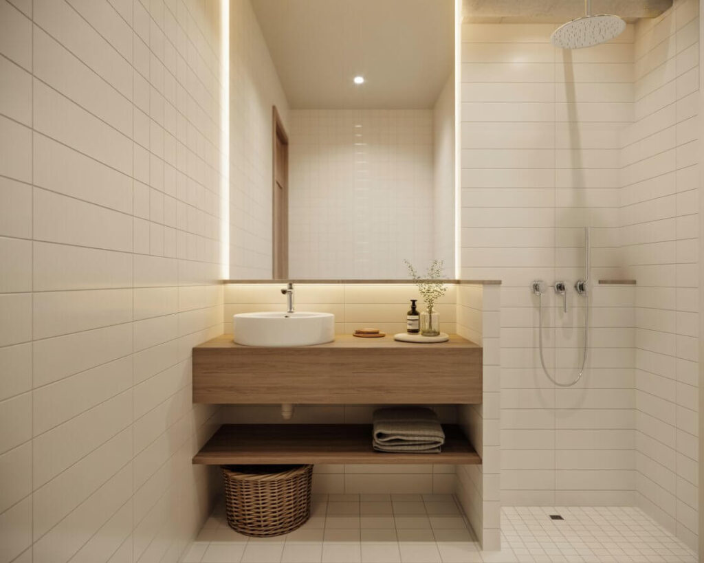 Pro tip: keep your shelves styled, not just functional. Mix practical items with decorative pieces. A pretty soap dispenser, a small candle, maybe a tiny succulent – suddenly your storage becomes part of the decor.