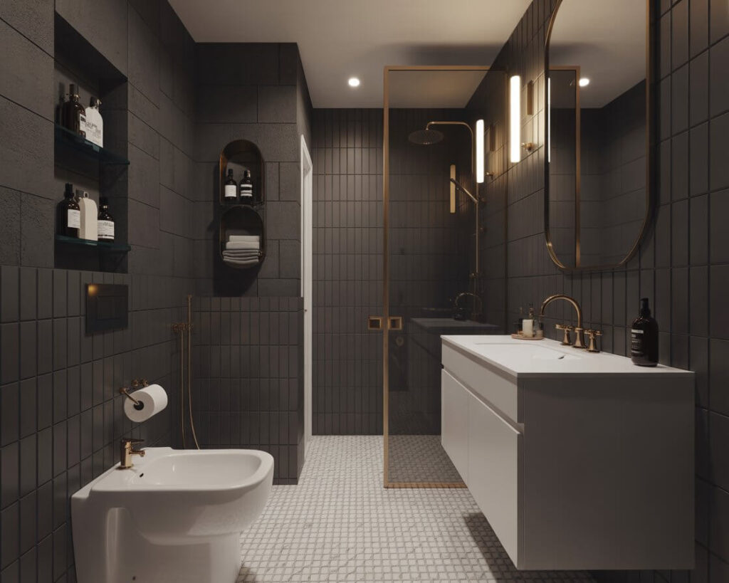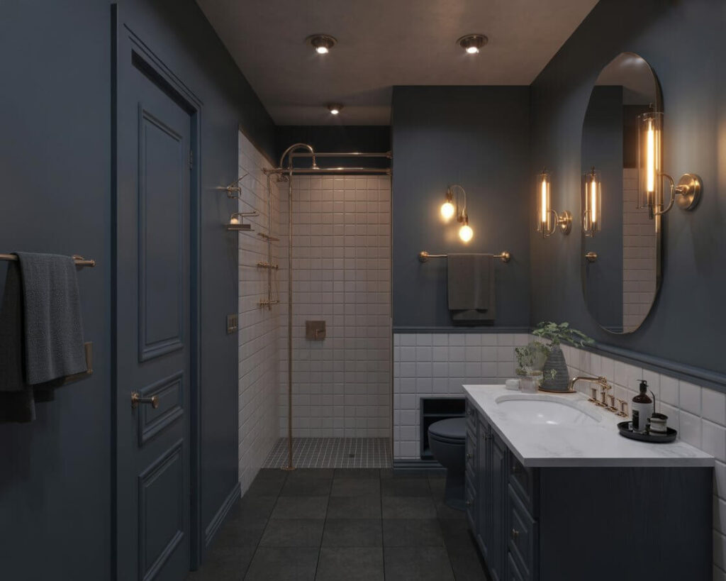 Want to try it but feeling nervous? Start with just one accent wall behind the vanity. Trust the process – dark colors in small spaces create depth and drama that light colors just can’t match.