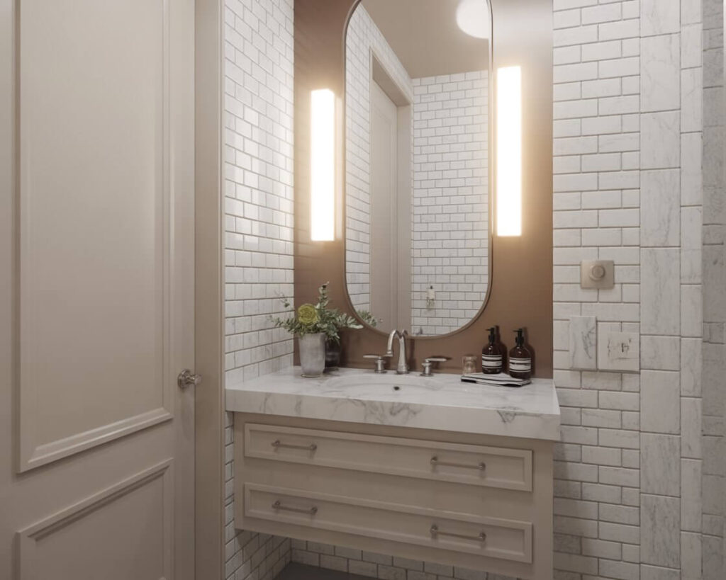 Here’s a secret: you don’t need actual marble to get that luxe look. But if you want to add instant elegance to your half bath, nothing beats a marble element. Whether it’s a small marble shelf, a vanity top, or even just marble-look tiles, this material screams sophistication.