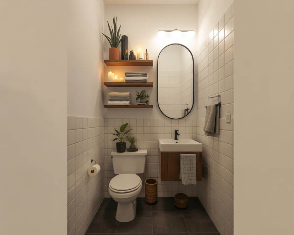 Let’s address the elephant in the tiny room: storage in a half bath is a nightmare. But floating shelves? Game changer. They add storage without eating up precious floor space, and they look intentional rather than cluttered.