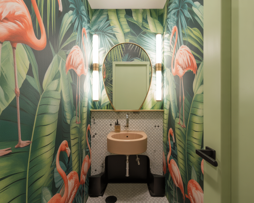 You want to know the quickest way to make your half bathroom unforgettable? Wallpaper the heck out of it. I’m serious! This tiny space can handle patterns that would overwhelm your living room. Think tropical leaves, geometric patterns, or even that funky flamingo print you’ve been eyeing.