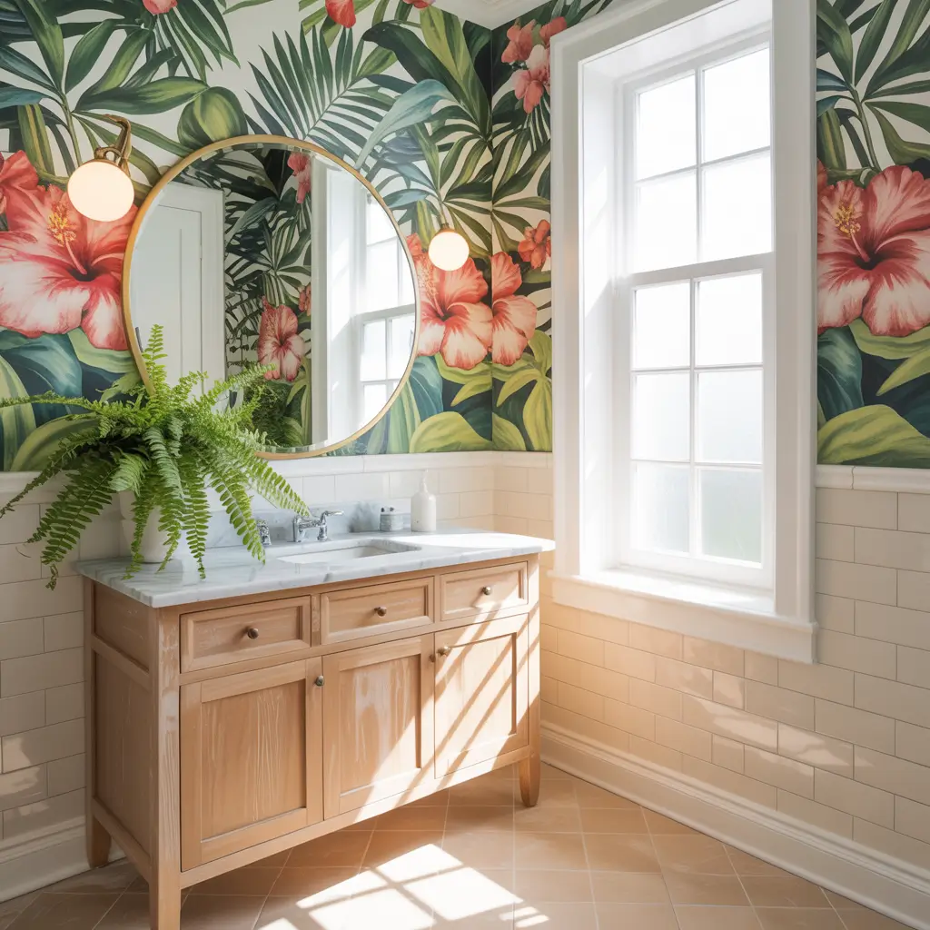 Ready to turn your powder room into a mini vacation? Tropical wallpaper is your ticket to paradise, even if paradise is just off your hallway.