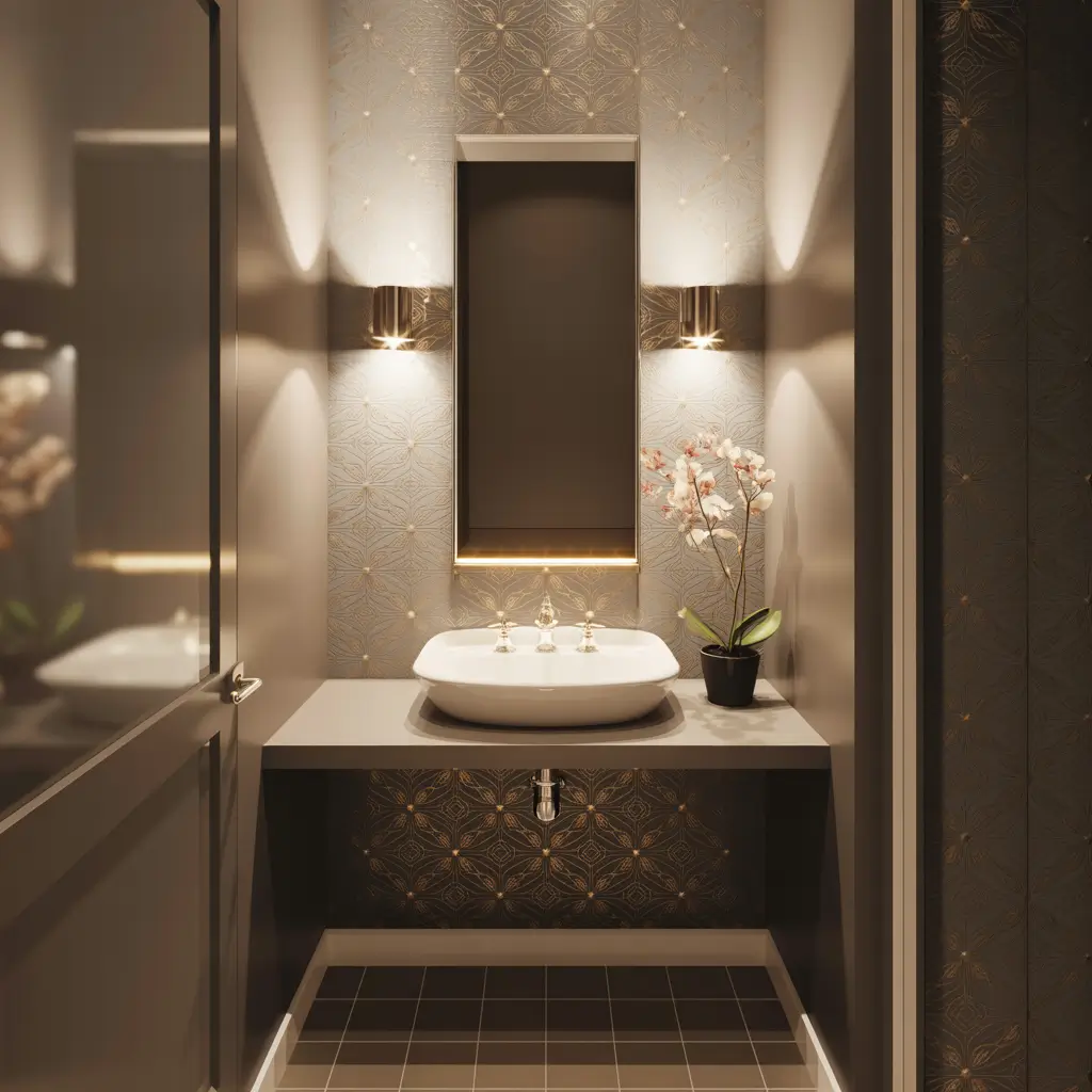 Want to know a designer secret? Metallic wallpaper is basically a cheat code for making tiny spaces feel luxe. The way it reflects light makes your half bath feel twice its actual size. Science? Magic? Who cares – it works.