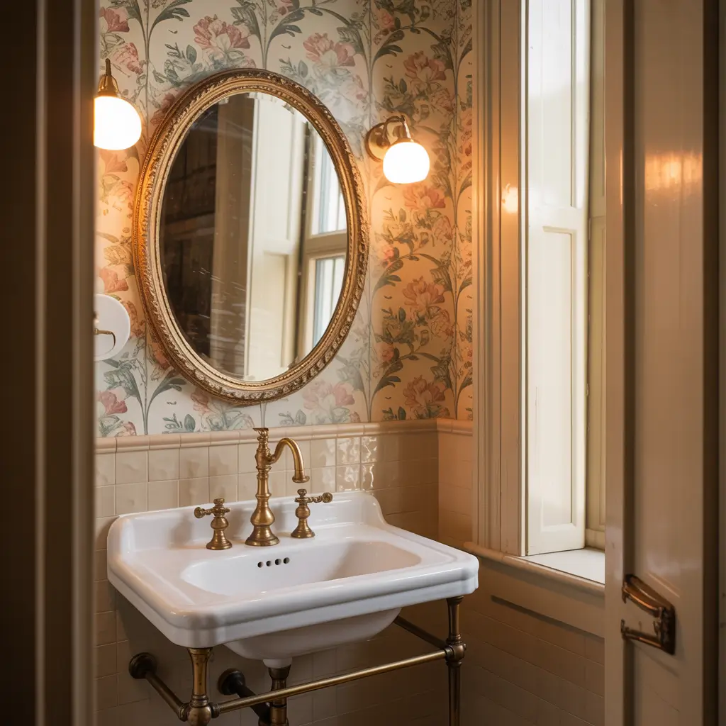 Let’s talk about bringing back the classics without making your bathroom look like a time capsule. Vintage-inspired wallpaper gives you all the charm without the dated vibes.