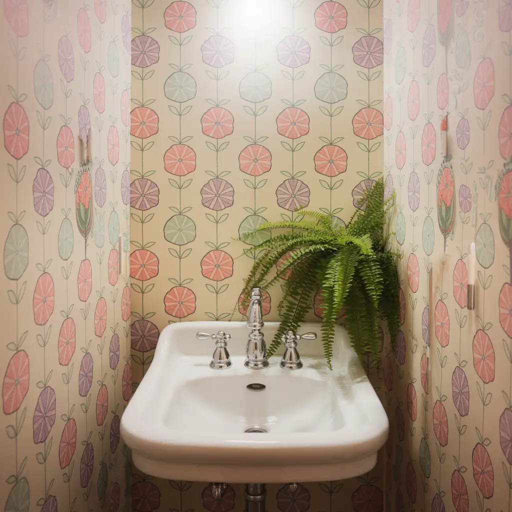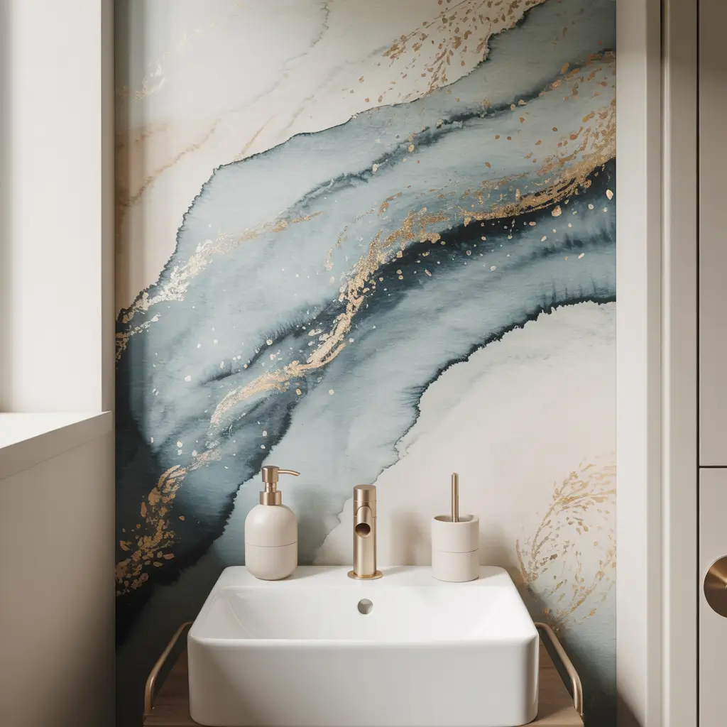 Artistic Mural Wallpaper for Tiny Bathrooms