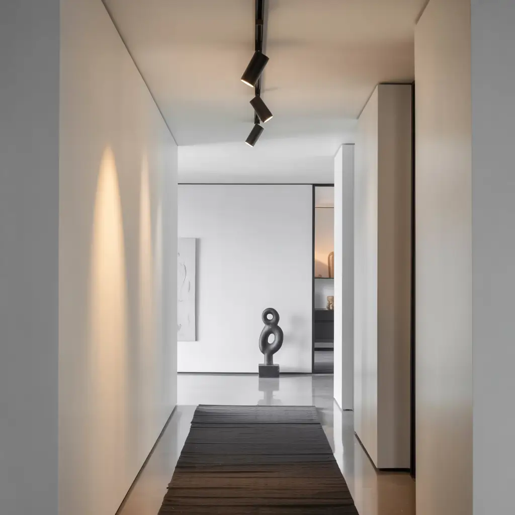 Track lighting used to be ugly. There, I said it. But modern black matte track systems? They’re a whole different story. These fixtures give you complete control over your hallway lighting while looking impossibly chic.