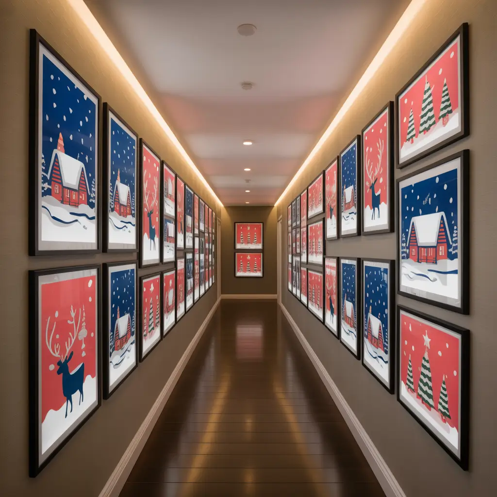 Remember those family photos and art prints hanging in your hallway? Time to give them a holiday makeover! I started doing this after realizing I could temporarily transform existing decor instead of storing it and starting from scratch.