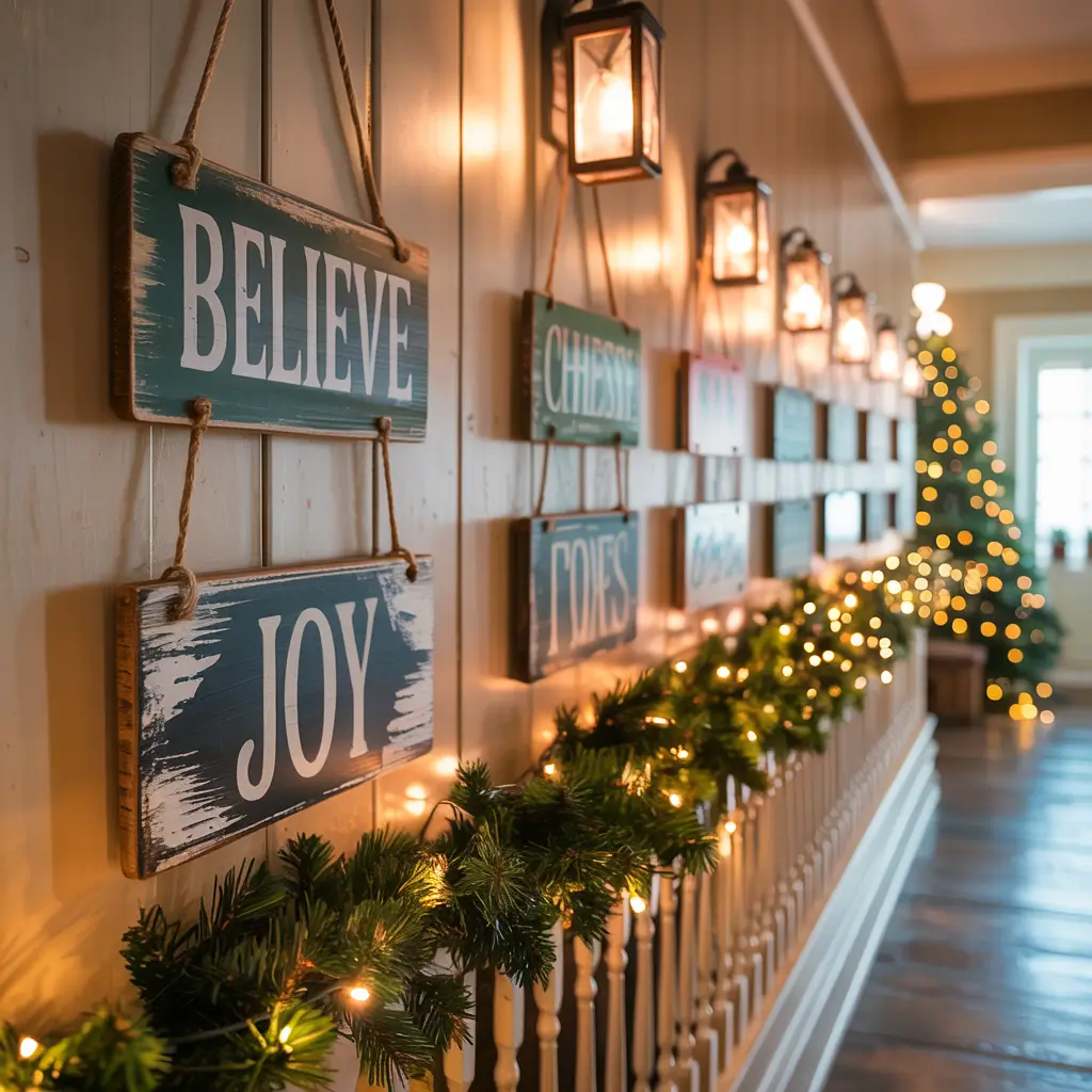 Nothing says “welcome to our Christmas home” quite like personalized wooden signs in your hallway. Whether you DIY or buy, these add personality and charm that generic decorations just can’t match.