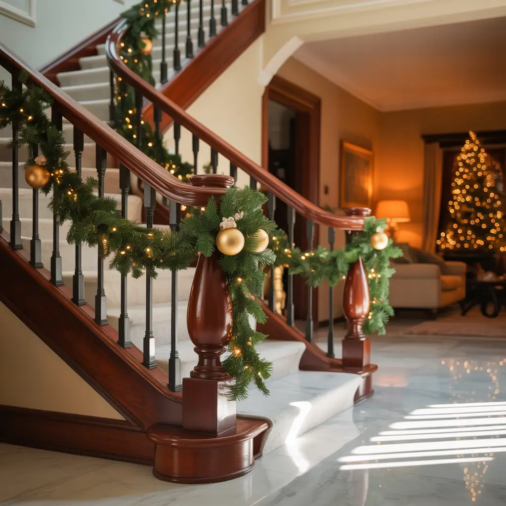 Got stairs in your hallway? Lucky you—you’ve got a built-in Christmas light showcase waiting to happen! Warm white LED strips under the handrail or along the stairs create this incredibly cozy, sophisticated vibe.
