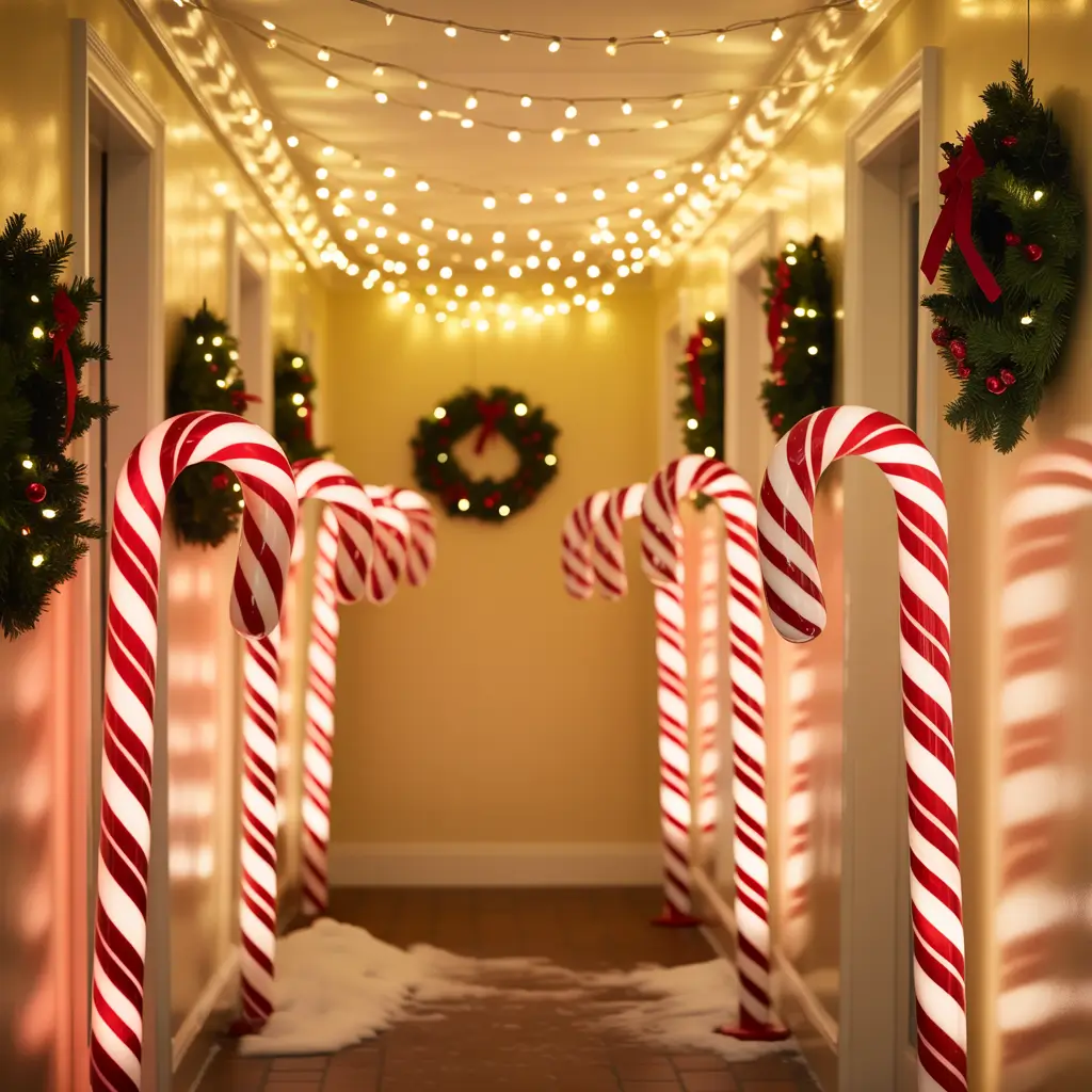 Alright, let’s get playful! Candy cane light poles bring that whimsical, childhood magic to your hallway without looking like you raided a kindergarten classroom.