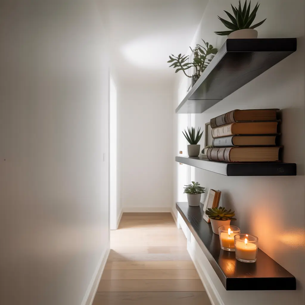 I installed three staggered floating shelves in my hallway last year, and they’ve become my favorite spot to showcase small treasures. The key is restraint – these aren’t meant to hold your entire book collection. Think small potted plants, a couple of carefully chosen books, maybe a small sculpture or two.