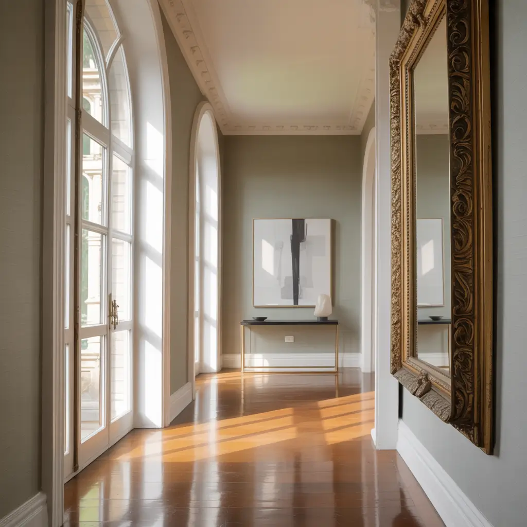 Hang your mirror at eye level – sounds obvious, but you’d be surprised how many people get this wrong. If you’re dealing with a particularly dark hallway, position the mirror to reflect a light source or a window from an adjoining room. Instant brightness boost without touching the electrical.