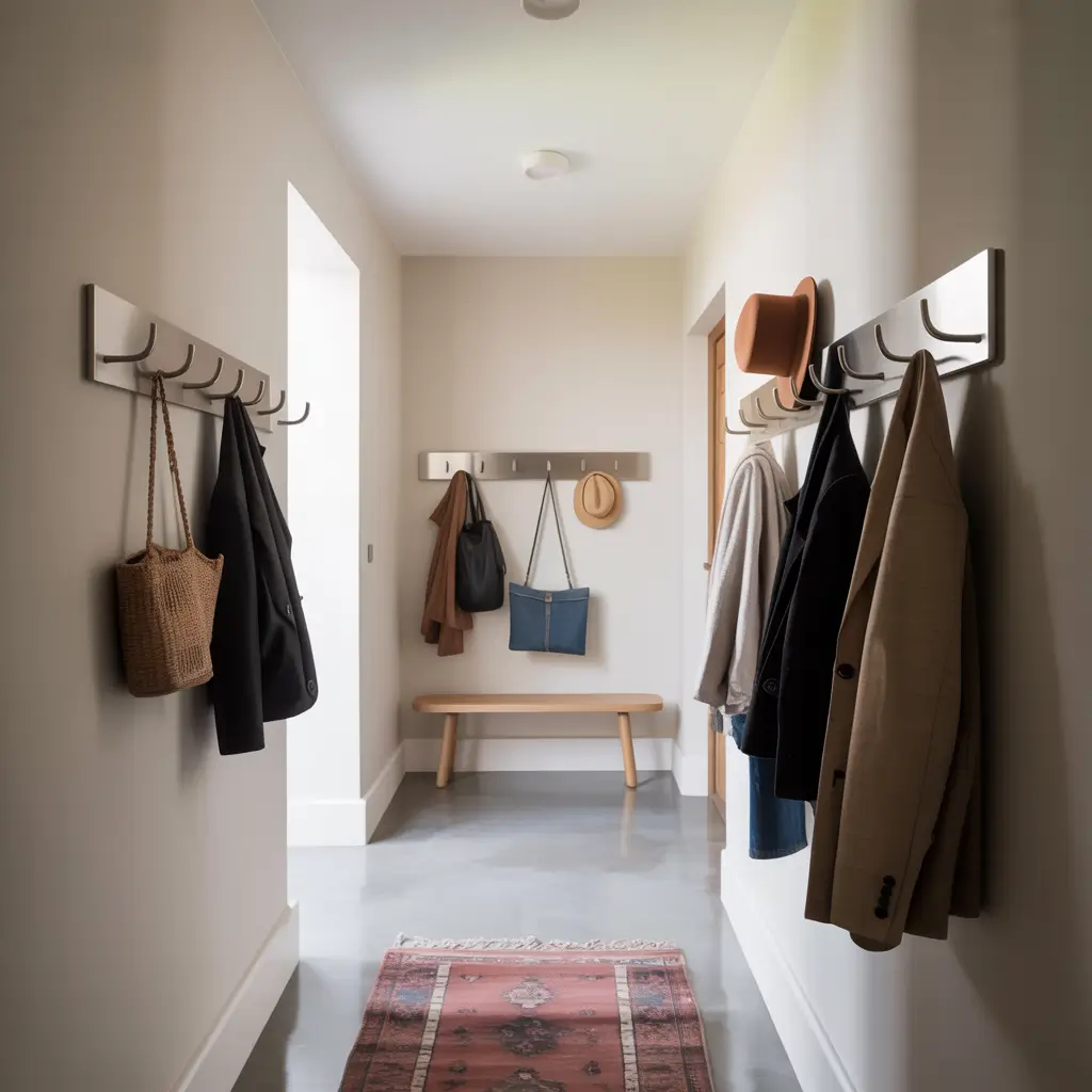 Let’s get practical for a second. Hallways need to be functional, and decorative hooks serve double duty as both storage and style elements.