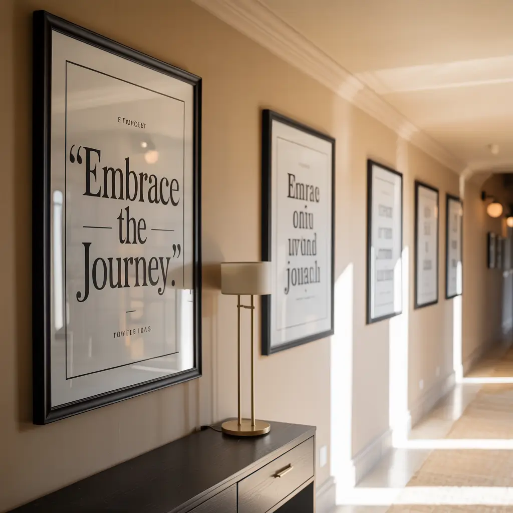 Choose fonts and frames that match your decor style. Modern, minimal typography in simple frames looks current and sophisticated. Handwritten or calligraphy styles work for more traditional spaces.