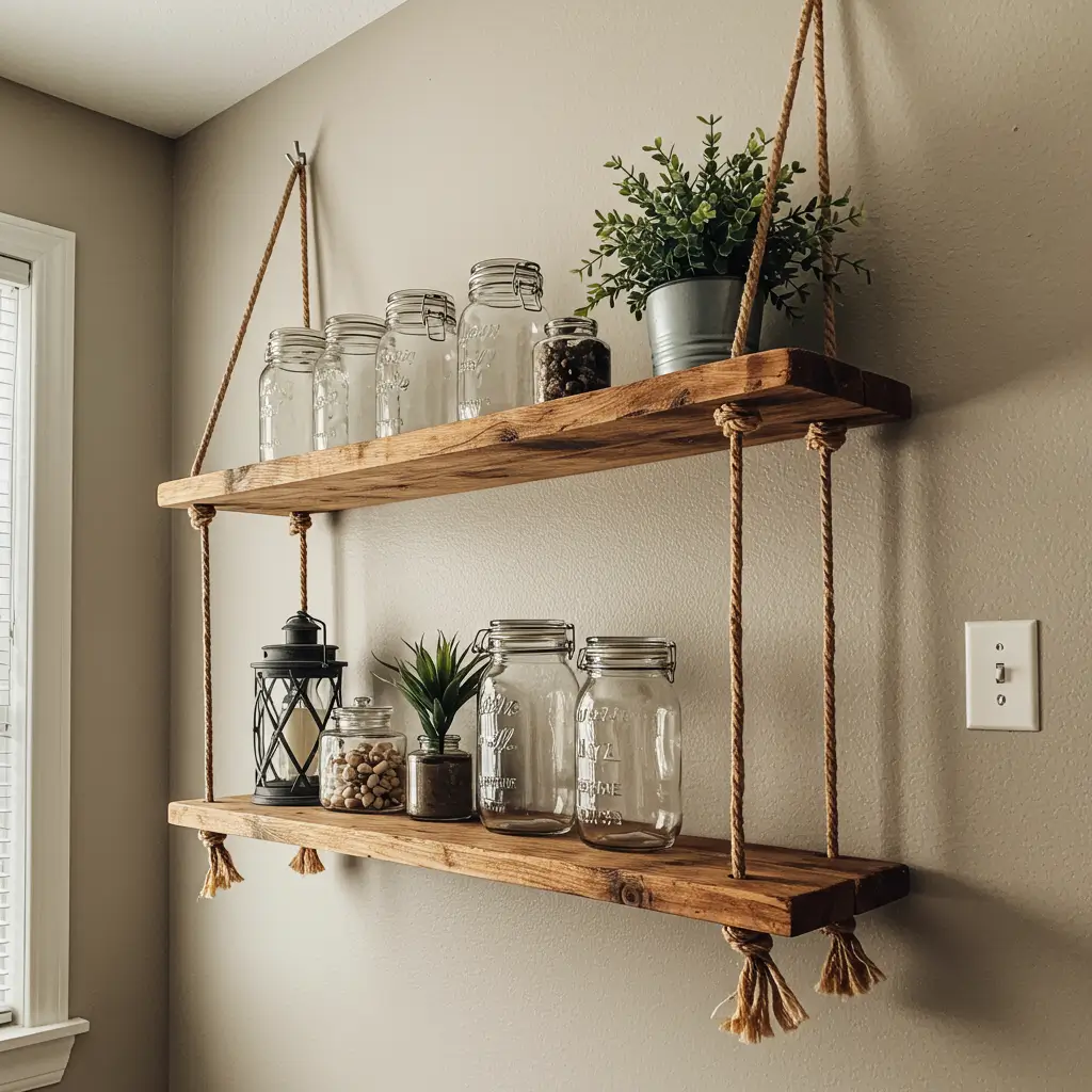 Rope and wood shelves bring coastal vibes even if you’re landlocked in Ohio. I installed mine in the kitchen, and suddenly meal prep feels like I’m cooking in a beach cottage. The rope adds an organic texture that softens the hard lines of typical shelving.