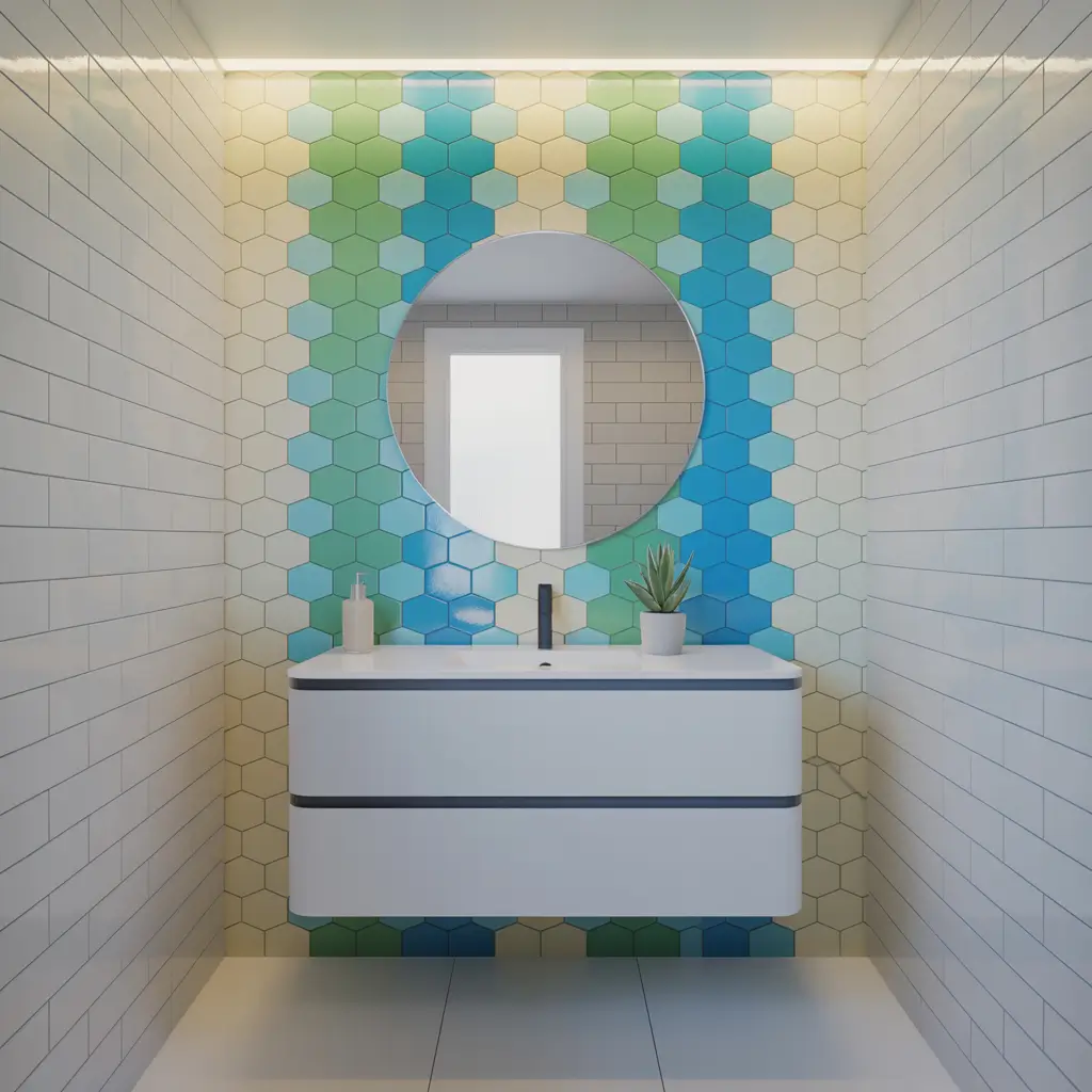 Colorful Hexagon Accent Wall Bathroom