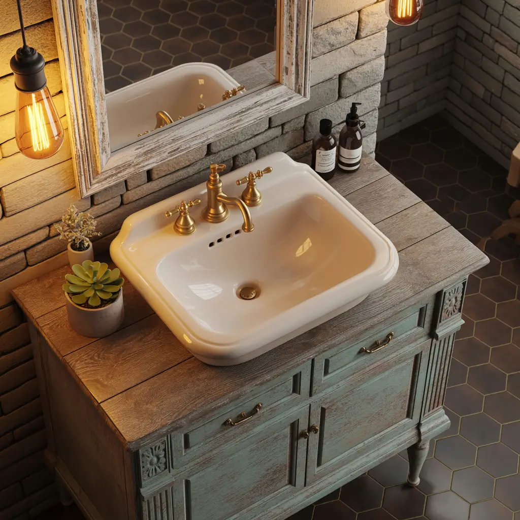Rustic doesn’t mean outdated. Terra cotta or wood-look hexagon tiles bring warmth and character that cold, modern bathrooms often lack. Combined with vintage fixtures and natural materials, they create this perfectly imperfect aesthetic that feels lived-in and loved.
